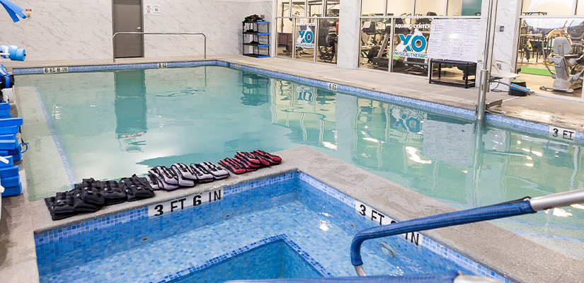 Each aquatic therapy session begins with a physical evaluation in the therapy pool. The therapy pool is usually heated to around 92–94°F, which helps relax muscles and promote blood flow. A personalized care plan is designed to address the problem. During your session, a licensed physical therapist guides you through therapeutic exercises in the water.