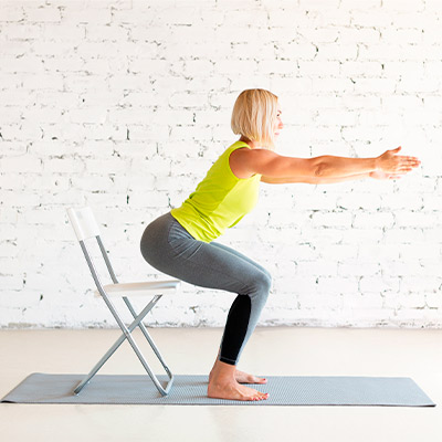 | 10. Chair Squats | Stand in front of a chair with feet shoulder-width apart. Bend your knees and lower your body to sit, then stand back up without using your hands. Repeat 10 times. | ![]() |