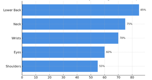 Even minor misalignments in your workstation can lead to significant discomfort over time. The following data highlights the most commonly affected areas due to poor ergonomic setups: